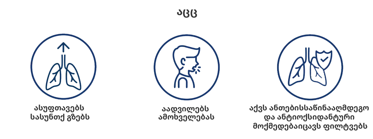 აცც ® შეიცავს აცეტილცისტეინს და ხელმისაწვდომია რამოდენიმე ფორმით: